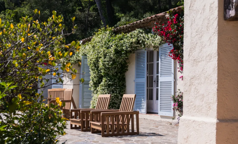 Ви будете жити на приватній віллі з басейном, на першій лінії від моря, розташованій на закритій території національного заповідника — по сусідству з літньою резиденцією президента Франції, за 20 хвилин від Сен-Тропе.