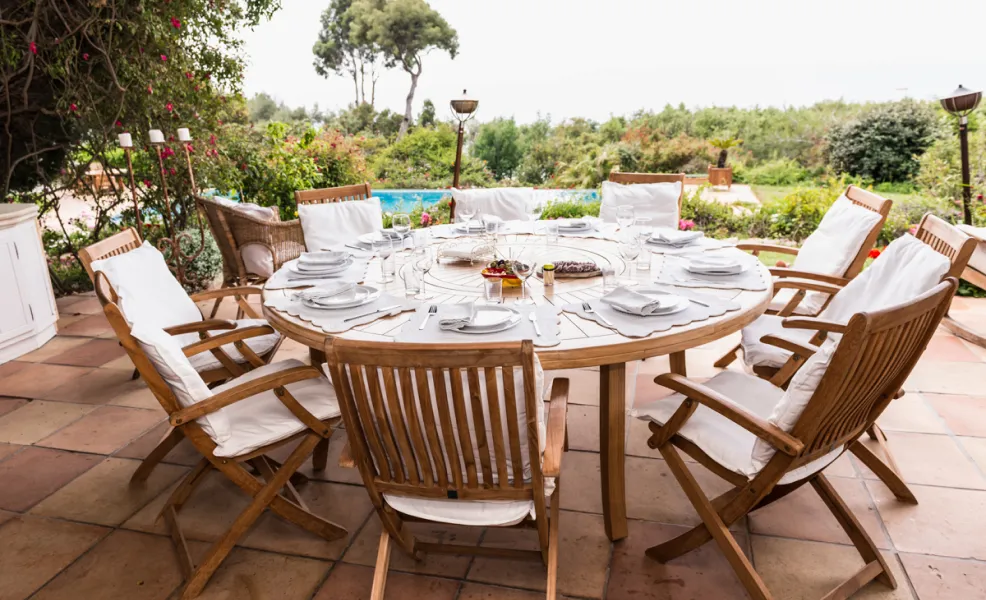 Спільна вечеря на відкритій терасі на віллі.